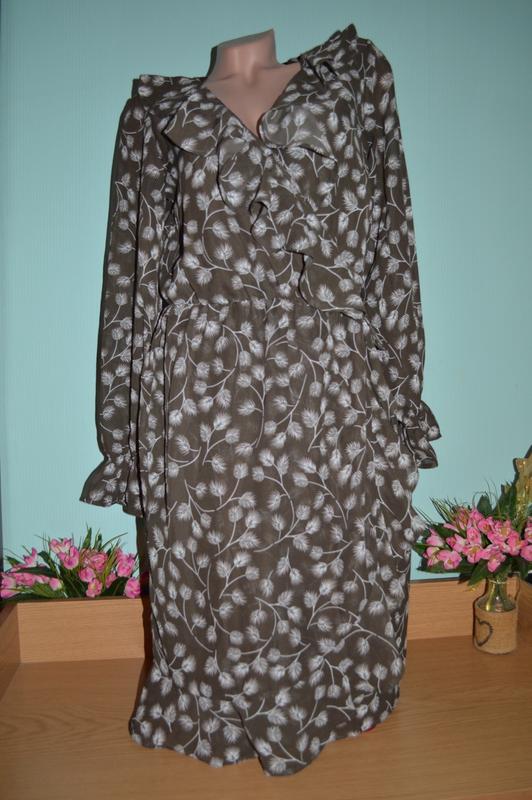 Платье идеальное состояние. Платье шифоновое на подкладке, рукава полупрозрачные. Цвет хаки з серым. По бирке р. s, в реальности идем на полномерную М.