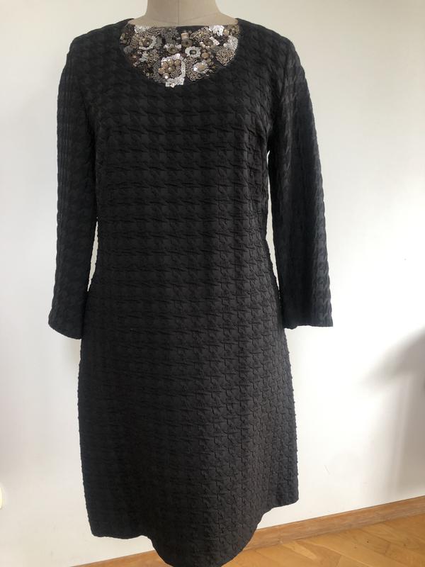 Сукня чорна .Нова.Перед сукня прикрашений надзвичайно багатою аплікацією з каміння і паєток!!Довгий рукав. Блискавка по спинці.