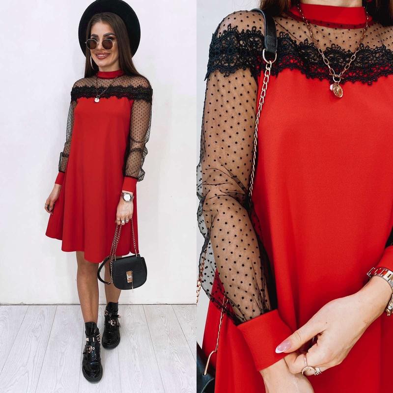 Модель 333 Женское платье Размерный ряд S,M,L,XL Материал основы креп трикотаж, отделка сеточка в горох и кружево Цвета чёрный красный изумруд Длина изделия 94 см Супер качество по супер цене ! Цена 470 грн✅