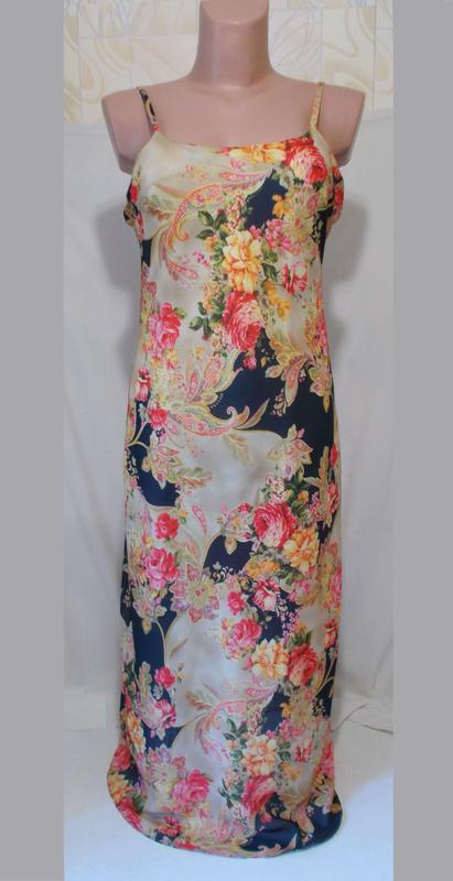 Роскошное и очень красивое платье от итальянского дизайнера. Состояние нового. Ткань легкая и воздушная, скроена по косой, хорошо тянется, струящаяся, на подкладке бежевого цвета, почти на всю длину платья. На спинке потайная молния длиной 30 см. ОГ манекена 88 см. Состав: 100% ПЭ Мерки (на бирке 36): ПОГ 42 см ПОТ 38 см ПОБ 48 см низ 72 см боковой шов 105 см длина 120 см