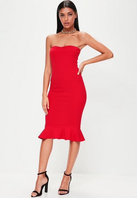 Красное миди платье бандо от Missguided.Очень женственное и стильное, выглядит дорого
