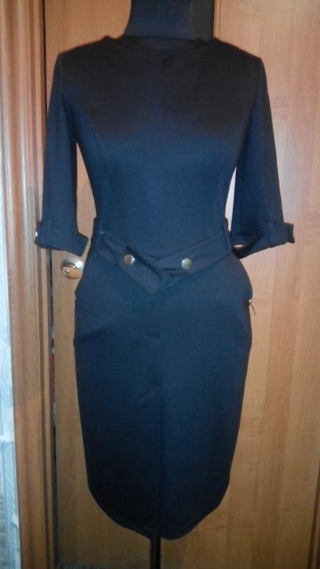 платье хорошо подчёркивает фигуру, длина 89, ОГ 94, ОБ 98-100, ОТ 78, рукав 33, плечи 38, пройма 44, сбоку карманы, спереди шлица