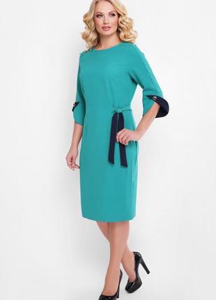 Сукня полуприталенного силуету з асиметричною зав'язкою на пояс. Рукав 3/4 на фігурному манжеті. Матеріал - креп-костбмка. Розміри 46,48,50,52,54,56,58. Власне виробництво. Більше товарів на сайті vlavi. ua