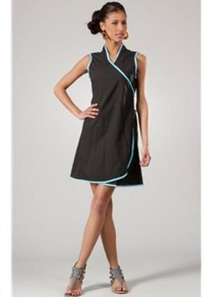 Черное платье 100% хлопок. Окантовка - голубая. Очень легкое, смотрится нежно. Абсолютное совпадение с фото (модель). Длина 96 см. Если запахнуть - Ог (по линии подмышек) 46, От 42 (можно затянуть больше или отпустить), Об 45 (вообще не имеет значения), длина всего полотна по-линии талии 125 см, пройма рукава 23 см, плечико 8 см, длина от плеча до плеча по-спинке 37 см. Сделано в Непале. Маркировка L.