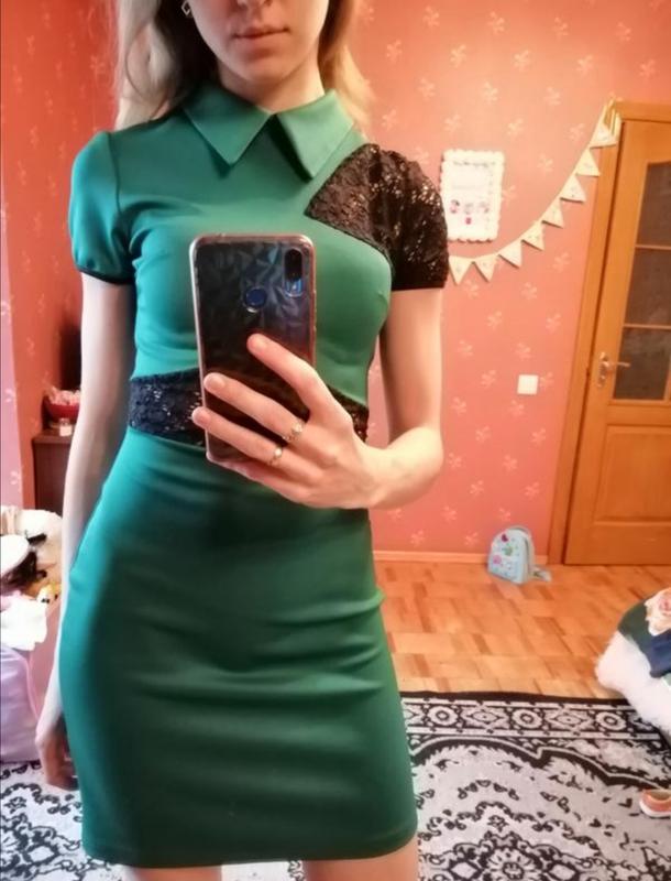 Приталене плаття, добре тягнеться і ідеально лягає по фігурі. Розмір с, можливе і хс, і м. Ажурні вставки, трохи вище коліна. Стан ідеальний. Колір вживу кращий, фото не передає. Скину ще додаткові фото.