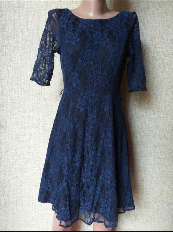 Гипюровое платье F&F на подкладке, темно-синего цвета, красивый вырез на спинке. При покупке вторая вещь бесплатно из категории Подарок.