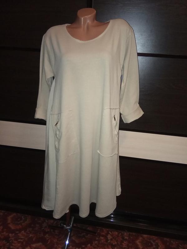 Обалденое трикотажное платье со вставками по бокам. Есть кармашки на замочках. К низу разширяется (трапеция). По бокам чуть длиннее. Ткань трикотаж двунитка ОГ 104-118 см. ОТ 140 см ОБ 170 см Длина 96-103 см