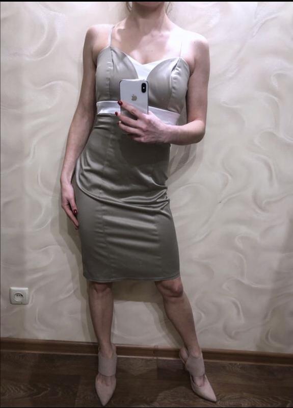 Бежевое платье в обтяжку, на потайной молнии, сзади разрез, бретельки регулируются