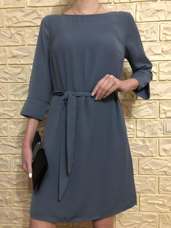 Платье в хорошем качестве, в идеальном состоянии! Верх вискоза 70%. Подкладка шифон. Длина 89см. Грудь 90. Талия Бёдра 108см. Цвет серо-голубой.