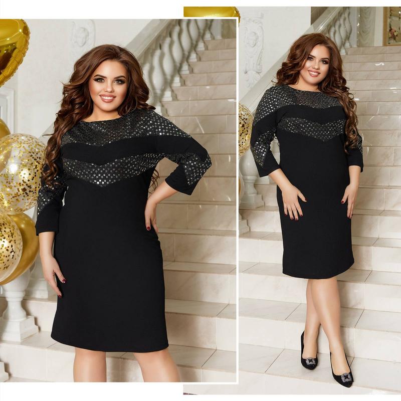 Платье Модель: #826 dembi Цена: 699 грн Ткань: крепдайвинг +паетка на трикотаже Цвет: черный с черной паеткой Размер: 50-52, 54-56, 58-60