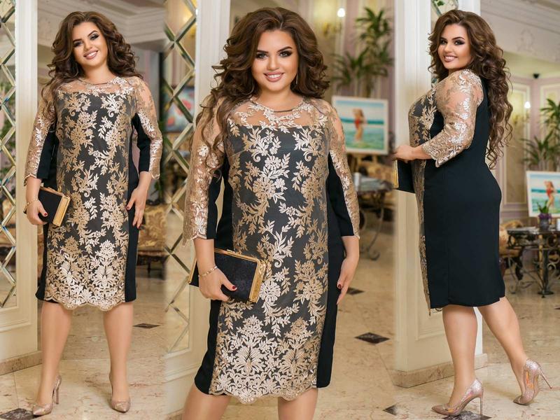 Платье №1249. Тимофеева Цена 640 грн Размер :50-52, 54-56, 58-60, 62-64. Цвет: синий, зеленый, марсала, черный . Ткань про-во Турции: креп дайвинг, дорогой гипюр. Шикарное платье для торжественных случаев, средней длины полуприлегающего силуэта. Боковые детали и спинка из креп-дайвинга, который утягивает фигуру и делает ее стройнее. Рукав 3/4. Подобный наряд сделает свою обладательницу в буквальном смысле ослепительной в торжественный вечер. Замеры: РАЗМЕР 50-52: Платье: дл. изд. 107 см, рукав 55 см ОГ-106 см ОБ-110 см РАЗМЕР 54-56: Платье : дл. изд. 108 см, рукав 56 см. ОГ- 116 см ОБ-120 см РАЗМЕР 58-60: Платье : дл. изд 109 см, рукав 57 см. ОГ-128 см ОБ-130 см РАЗМЕР 62-64: Платье : дл. изд 110 см, рукав 58 см. ОГ-130 см ОБ-132 см
