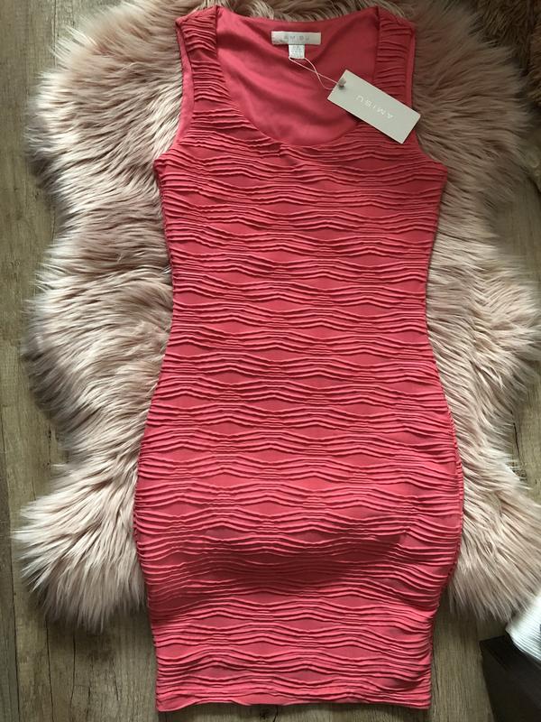 Новое платье с подкладкой, цвет-корал. Размер S, бирка есть на фото. Платье подчеркнёт вашу фигуру! Материал видно на фото. За деталями пишете мне . Так же ещё есть такое же платье другого цвета размера L
