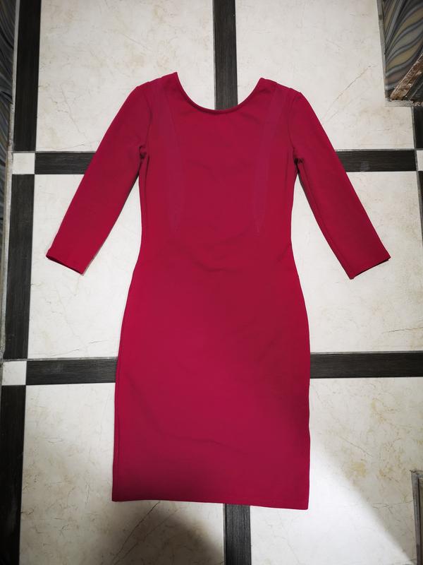 Сукня в ідеальному стані. Колір малиновий. Довжина від плеча 86см, плечі 35см, довжина рукава 3/4, від плеча 40см. ПОГ 38см, ПОТ 31,5 див. ПОБ 38. Від стегна до низу йде така ж ширина. Щільна тканина.