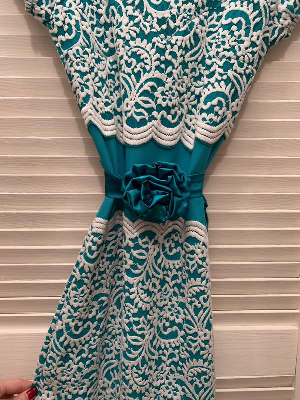 Бирюзовою приталенное платье до колен,пояс для украшения,замеры по запросу