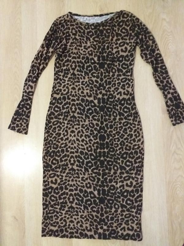 Трикотажное платье с леопардовым принтом, размер с - м, длина 101 см Пог 39 Пот 36 Поб 44