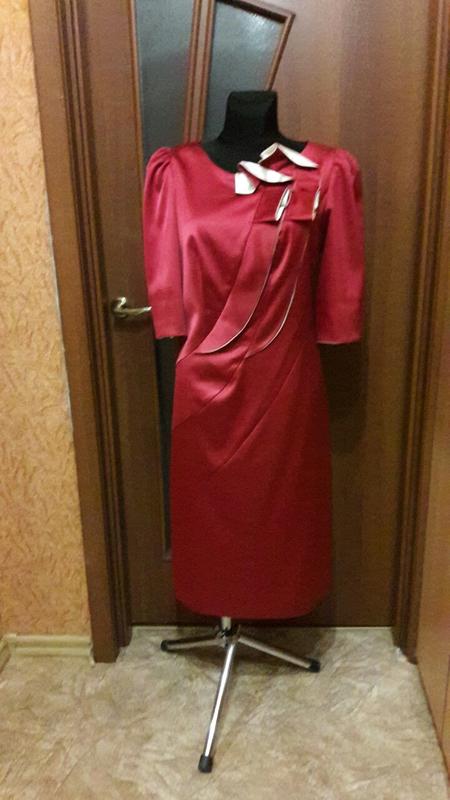 Платье плотной гладкой ткани бордового цвета с отливом. силуета прилегающий