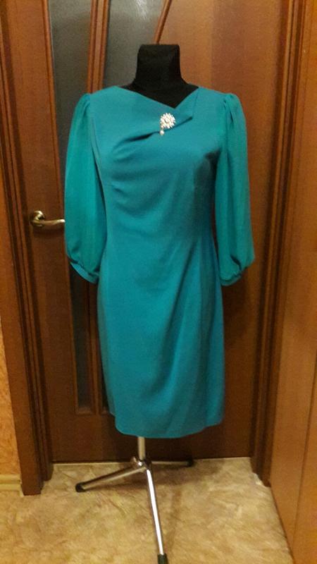 Народное платье бирюзового цвета. Ткань костюмная , рукав-шифоновый. Прилегающего силуета.