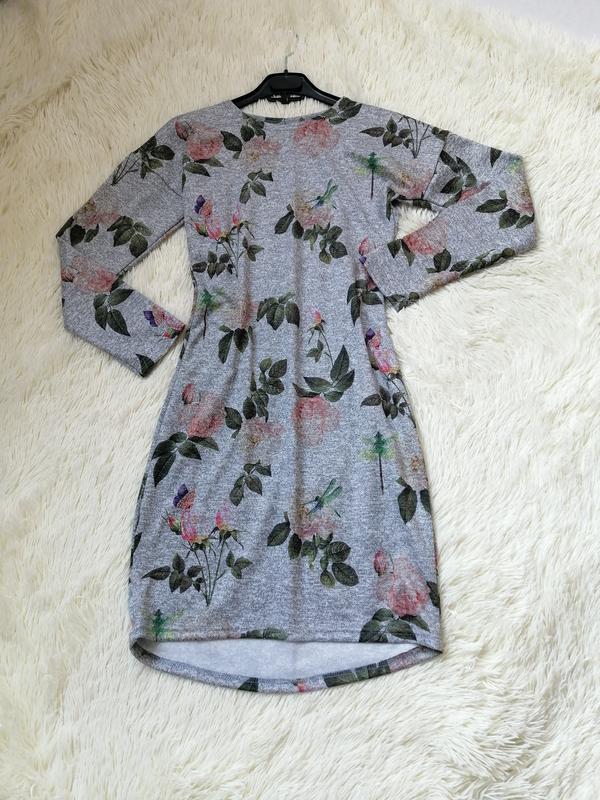 Платье трикотаж серый миланж с цветами отлично тянется, материал приятный к телу замеры** пог 44 тянется на 64 см поб 48 см тянется на 67 см длина 93 с по спинке,длина рукава от горловины 67 см бирок с составом ткани нет