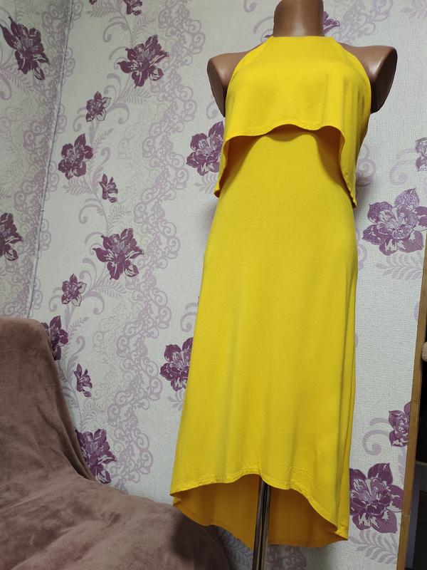Яркое, красивое асимметричное платье насыщенного желтого цвета. На лето просто находка. Размер S. Замеры груди 38 см, талии 40 см, бедер 44 см, длина платья спереди без бретелек 81 см, сзади 101 см. Состав: 95% вискоза, 5% эластан Доставка: 100% передоплата