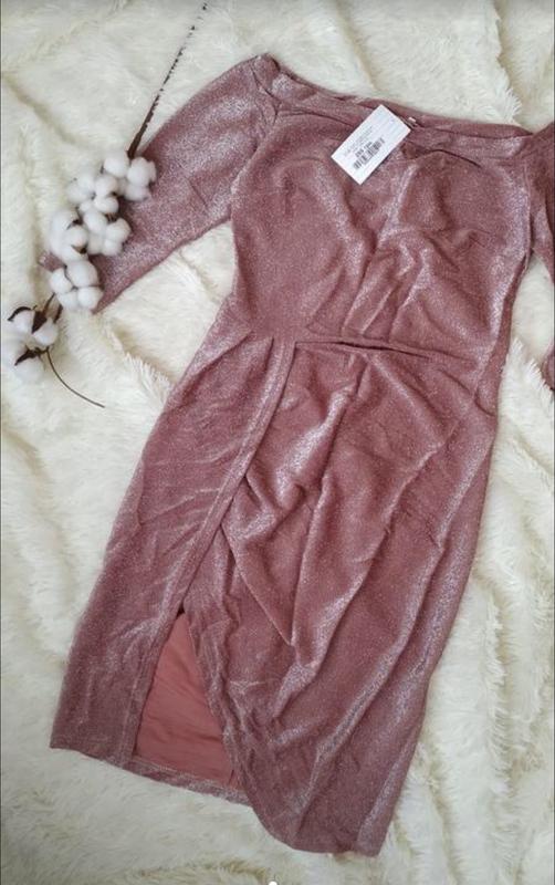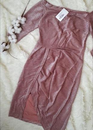 Платье с открытыми плечами, подчеркнёт талию.
