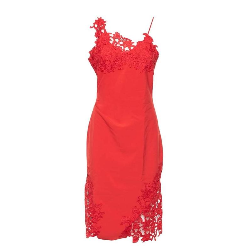 Распродажа! Платье MARCIANO GUESS красного цвета с кружевной отделкой. Модель без рукавов на брителях, приталенный крой, молния сзади. Артикул: 82G7468698Z. Состав: 90% полиэстер, 10% эластан. Размер: 42 (М) Цена: 1199 грн. (новая цена 1099 грн)