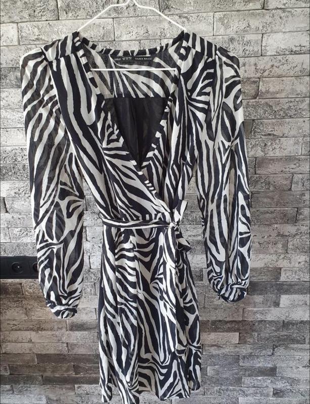 Туника-платье Zara Basic.С длинным рукавом, надевается с запАхом на две пуговки на талии, с пояском. Расцветка черно-белая зебра. Лёгкая полупрозрачная ткань, внутри черный подклад, чтобы не просвечивало, есть незначительный нюанс Длина 90, рукав 57,5, грудь любая )))) так как вырез. Но если от подмышки до подмышки 47-48. Я носила примерно на объём 92 +-. Меньше будет скоромнее , больше - секси. Талия 90, бёдра любые так как клеш.