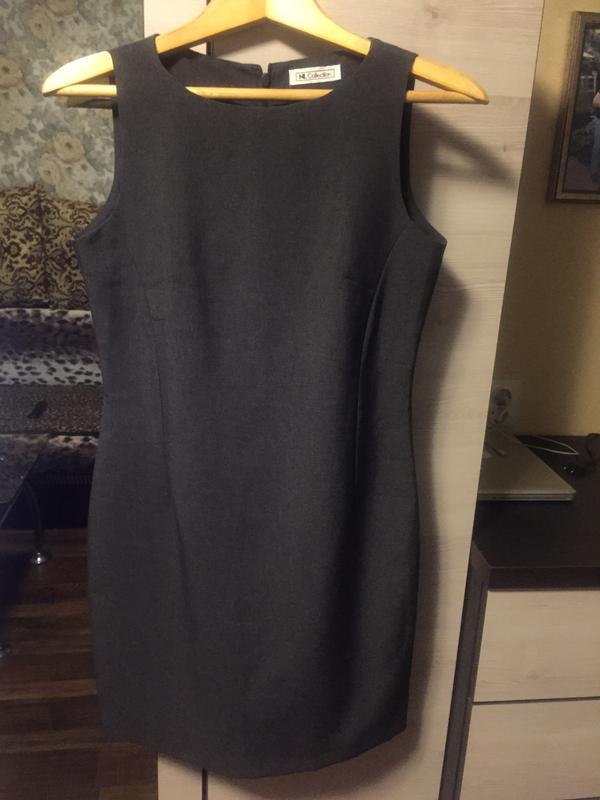 Классическое платье серого цвета. Без подкладки. Сзади змейка. Хорошо садиться по фигуре
