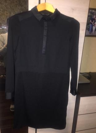 Платье с рукавом, чёрного цвета. Интересный фасончик. С воротничком. Атласная отделка