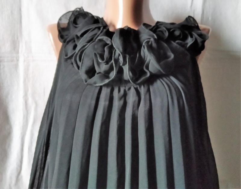 Маленька чорна сукня на трикотажному підкладі,з чудовим "Трояндовим" оздобленням. ПІДПИСНИКАМ-ЗНИЖКА 15% КУПУЄТЕ БІЛЬШЕ 2-Х РЕЧЕЙ--ЗНИЖКА 20% Всі виміри зроблені в спокійному (не розтягнутому) стані. ФОТО НА ТІЛІ НЕМАЄ. Довжина(по спині) 85 Завширшки(пахви) 46