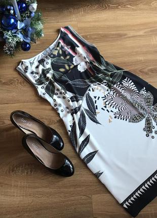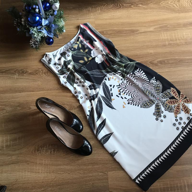 Малюнок принт Пошиття прямий Тканина добре тягнеться По боках розрізи Склад 100%поліестр{перед}спинка 95%віскоза 5%еластан Розмір 38 Орієнтуйтеся на заміри ПОГ 47-50 ПІТ 49-51 Довжина 79-80 🌵Відправляю новою поштою,автолюкс,джастін,укрпоштою. 🌵Оплата на картку або накладний платіж з передоплатою в 100 грн. 🌵Повернення та обміну немає!Прошу зрозуміти і пробачити💋💋💋 Гарних вам покупок!🌹