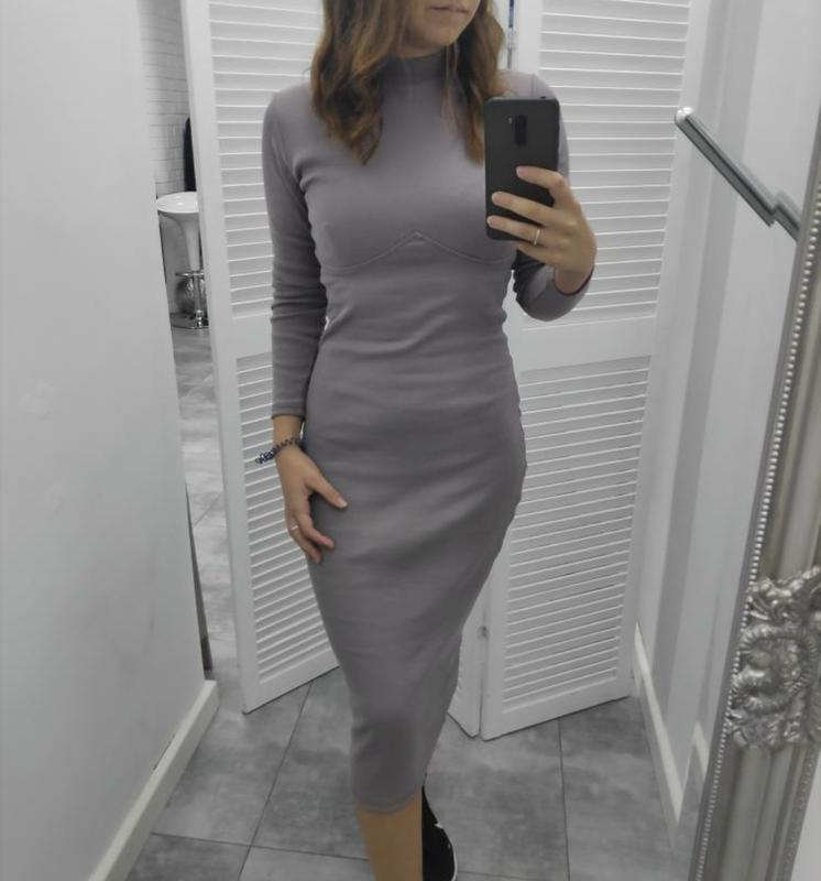 Сукня в рубчик з окантовкою під грудьми. Приталене. Довгий рукав. Тренд 2021