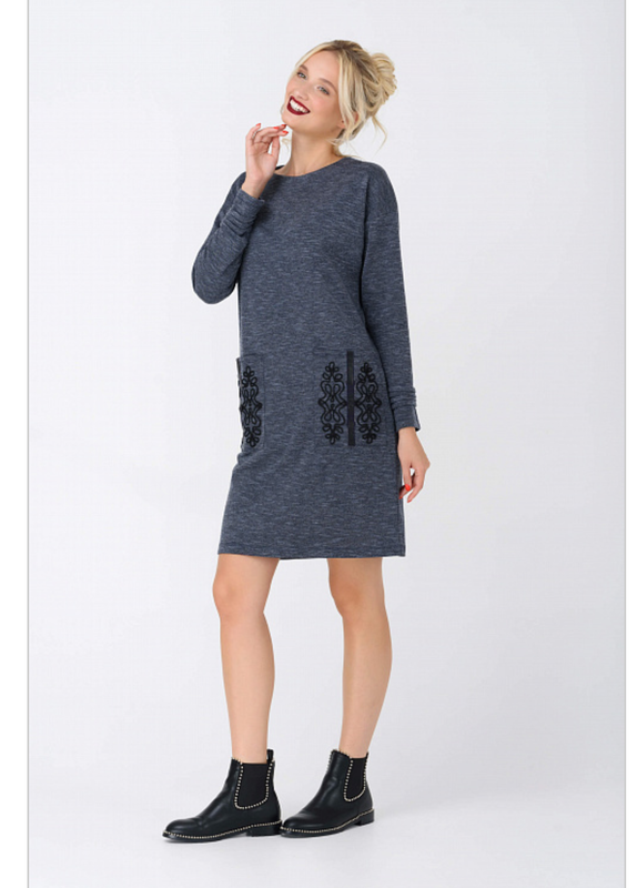Ця трикотажна сукня - те, що потрібно в холодну пору року! Матеріал легкий і одночасно теплий. Дана модель з трикотажної тканини з меланжевим плетінням не тільки практична і міцна, а й неймовірно красива. Сукня прямого фасону, доповнено двома кишенями, які прикрашені унікальною вишивкою. Ця сукня буде невід'ємною частиною вашого осіннього гардероба!
