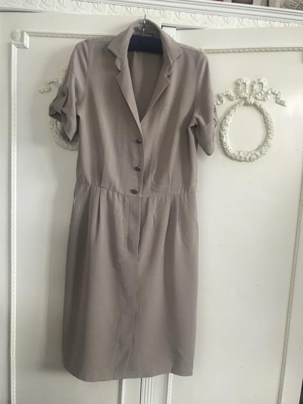 Стильное платье длиной миди от Paolo Tonality. Цвет полностью соответствует фото. Отличный фасон, качественная фурнитура, пуговицы металлические. Расстегивается спереди до линии бёдра, внизу по шву-маленький разрез . Размер по бирке -44. Замеры:длина-103 см, ПОГ-50 см, ПОТ—41 см, ПОБ-54 см.Без подкладки.есть пару мелких загрязнений-учтено виденные-выводить не пыталась.