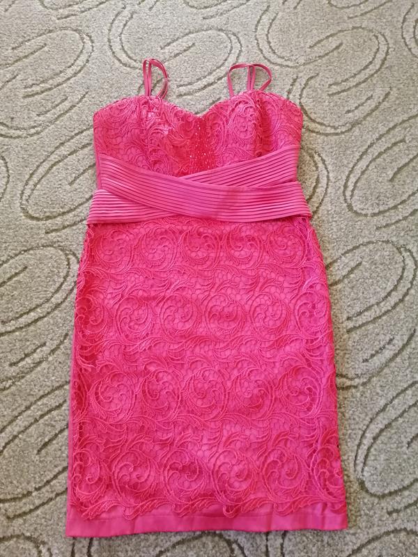 Плаття club frendy 42 розмір, але підходить і на 44-46, колір корал, на брительках, які знімаються, гарна щільна тканина атлас стрейч, тягнеться, спереду якісне плотне мереживо, дуже гарно виглядає на фігурі, довжина до коліна, ззаду невеликий розріз