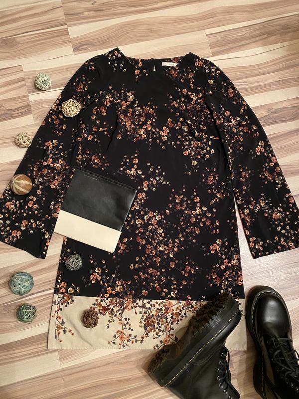 Красивое «цветочное» платье с расклешенным рукавом от известного английского бренда George 🇬🇧🤩🙌🏻 ▪️Невероятно романтичное ,игривое платье чёрного цвета в цветочный принт, низ - бежевого цвета также в цветочный принт✔️ ▪️Без подкладки, не просвечивается✔️ ▪️Длинный, широкий, слегка расклешенный рукав ▪️Застёжка - пуговка сзади ▪️Состав: 100% полиэстер, не мнётся👌🏻, не тянется❗️ ▪️Размер указан 12 UK, 40 европейский, подойдёт и на 38 (см замеры ниже👇🏻, на фото меряю на рост 164см, мои параметры 85-60-90, мой размер S😉) ▪️Состояние идеальное,без дефектов и нюансов☝🏻 📲 Пишите,с радостью отвечу на все вопросы🥰 🔥 Не упустите отличную вещь по приятной цене🛍 👁 См другие мои объявления,есть много чего интересного👀🧐 💃🏻 Будьте на стиле ✨ 📍Длина от плеча: 87 📍Длина спинки: 87 📍Плечи по спинке: 40 📍Пройма рукава: 23 📍Ширина рукава снизу: 19 📍Рукав: 59 📍Под рукавами: 48 📍ПОТ: 47 📍ПОБ: 49 📍Низ ширина: 53 📦 Отправлю после оплаты на карту ПБ💳 🚛 Доставка «Нова/Укрпошта» за счёт покупателя👫 🚫 Обмен и возврат товара не предусмотрен,уточняйте все детали заранее,пожалуйста🙏🏻🙏🏻🙏🏻 📷 Все фото вещей реальные✅