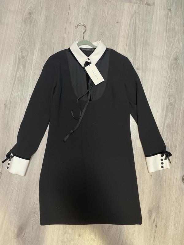 Нова сукня Zara чорного кольору в класичному стилі. Гарний фасон рукавів та комірця у білому кольорі з чорними ґудзиками.