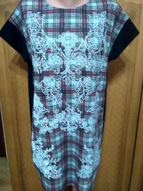 Гарне коротке плаття, рукав короткий. Об.грудей 112 см. Талія 112 см. Бедра 122 см. Довжина 89 см.