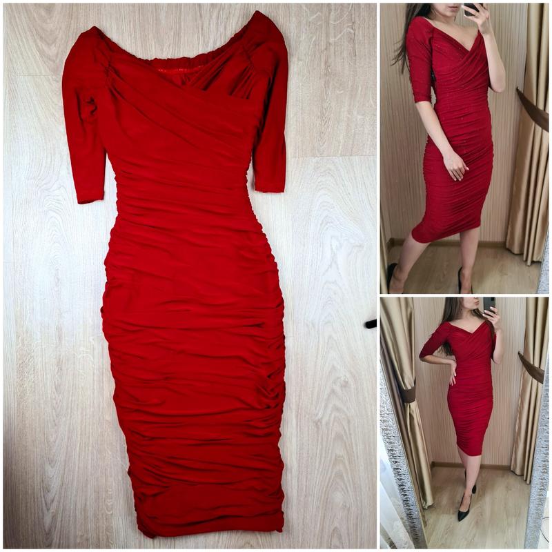 Платье Laura Byrnes размер S. Под верхней драпированной тканью есть плотная стрейч ткань. Сбоку молния. Плечи можно поднимать и опускать. На фото одето на рост 166. Длина 108 см. Подойдет на грудь до 88 бедра до 94💰550 грн