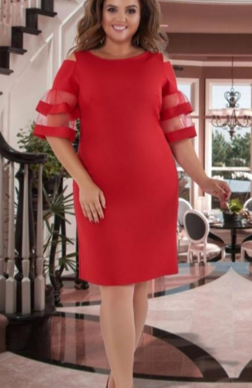Классическое платье насыщенного красного цвета. Хорошая плотная костюмная ткань-стрейч. Длина 95см, пог 50см, пот 46см, поб 55см