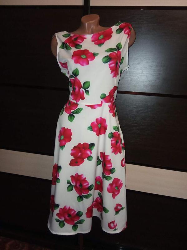 Шикарное, восхитительное, воздушное платье в цветочный принт, хорошо тянется, без подкладки, не просвечивается. Новое, но без бирочки. ОГ 104 см ОТ 84 см ОБ Свободно Длина 110 см