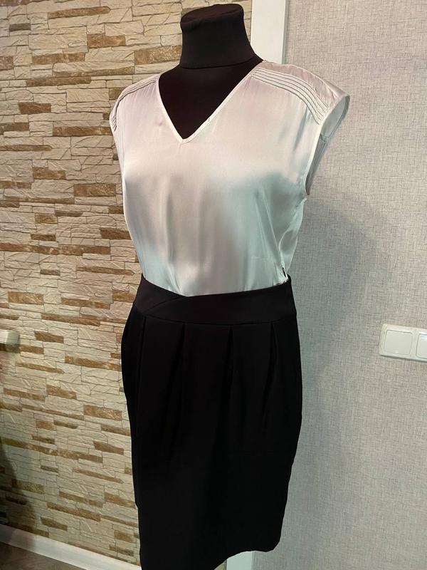 ПОЛНАЯ РАСПРОДАЖА!!! В СВЯЗИ С ЗАКРЫТИЕМ МАГАЗИНА. Модель выполнена в офисном стиле. Верх из атласной ткани. V-образный вырез горловины, визуально удлинят шею и всегда выглядит красиво и выгодно Юбка платья выполнена из плотного материала. Сбоку вшита молния. В наличии есть 42 размер: Ширина по плечу 49 см. Обхват груди 100 Обхват талии 84 Обхват бёдер 108 Длина платья 94