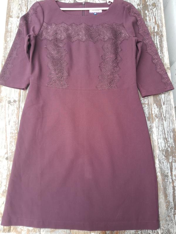 елегантное платье, длина по колено,рукава и лиф украшены кружевом.