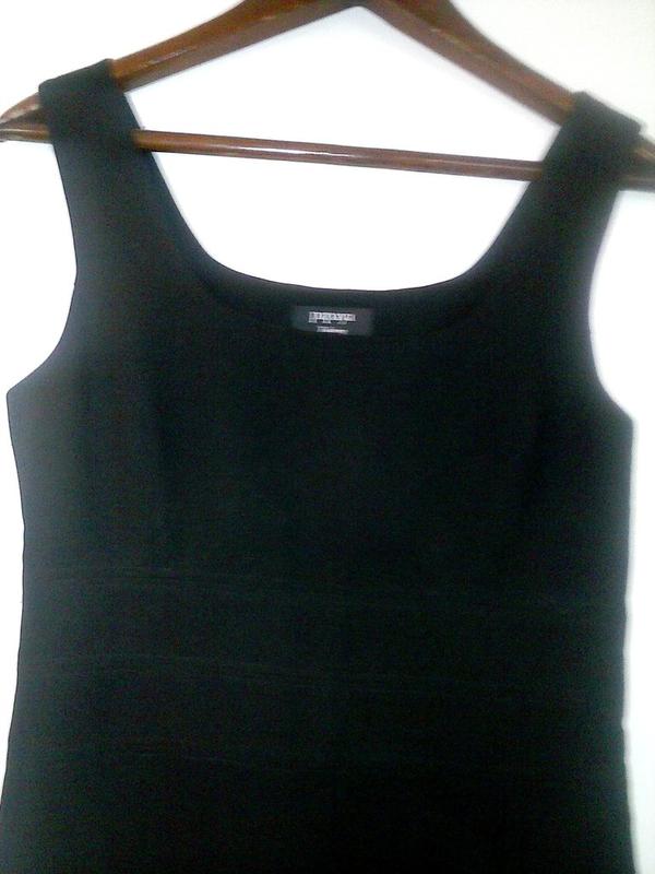 Відмінне офісне плаття чорного кольору (фірми Papaya), йде на розмір 48-50, збоку на блискавці, стан нового. Заміри - довжина 102 см, ПОГ - 42 см, ПОТ - 42 см, ПОБ- 52 см.