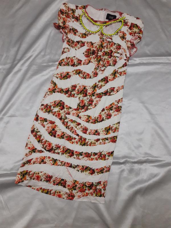 Платье на тонкой подкладке, Roberto Cavalli Class, оригинал ( есть голограмма). Итальянский размер 46, USA 10. ПОГ 41см, ПОТ 39 см, ПОБ 45 см, Длина 100 см. Вискоза 100%, эластичная . Дефект- утеряна 1 страза.