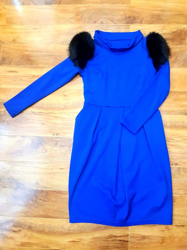 Классное платье р. 44 с меховыми плечами - натуральное. Ткань плотная. Есть карманы.Без дефектов.