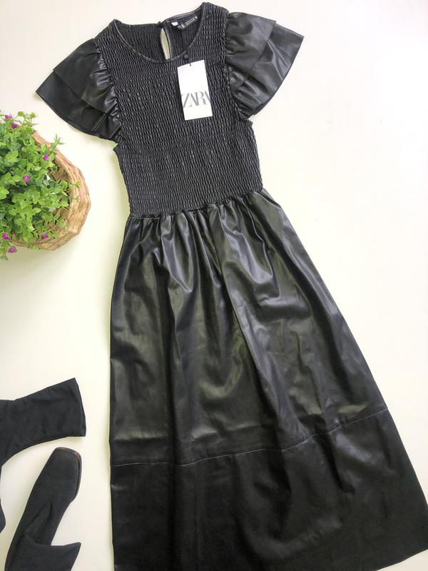 Платье Zara {черное кож зам} Новое. Размер хс, с