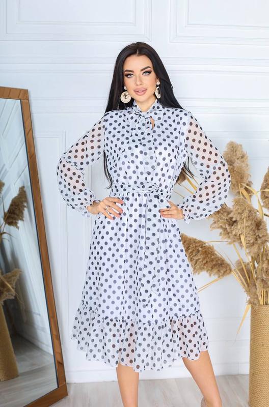 🔥 Платье 🔥 🔺 Арт. 663-589 ▪ Категория: #Платье ▪Размер: 42-44, 46-48, 50-52 ▪Цвет: в горох : бежевый, белый, темно синий цветы: лиловый, красный, темно синий ▪Материал: шифон ▪ В наличии!