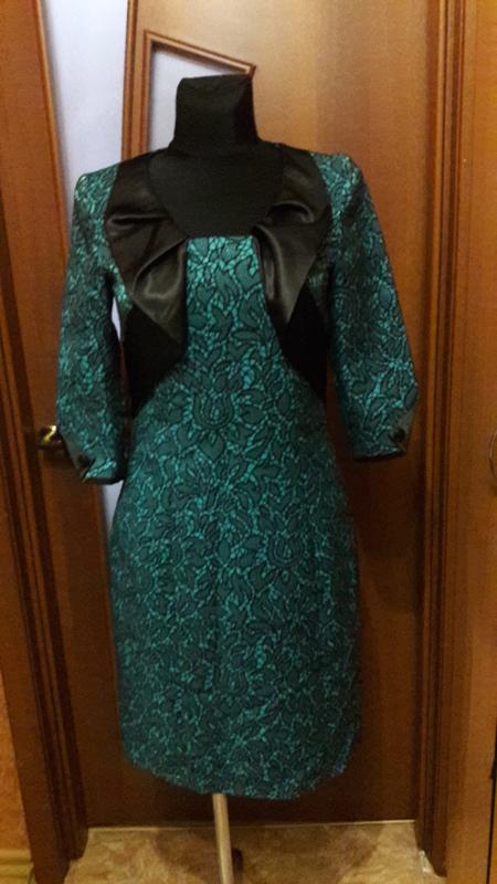Замечательное платье из жаккардовой ткани с имитацией кружева. Цвет Бирюза, на подкладке.Силует приталеный.