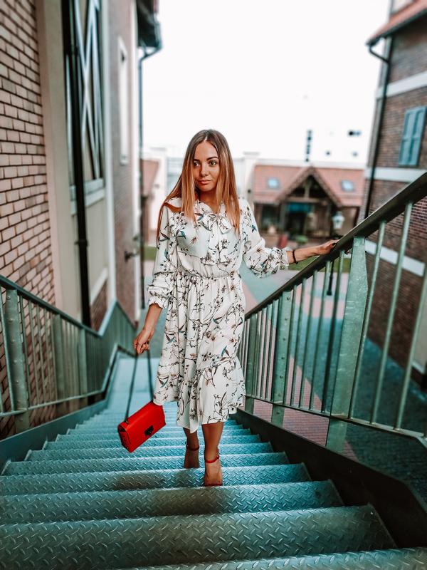 Легкое платье в цветочный принт. Очень красивое. На талии резинка. Размер - S