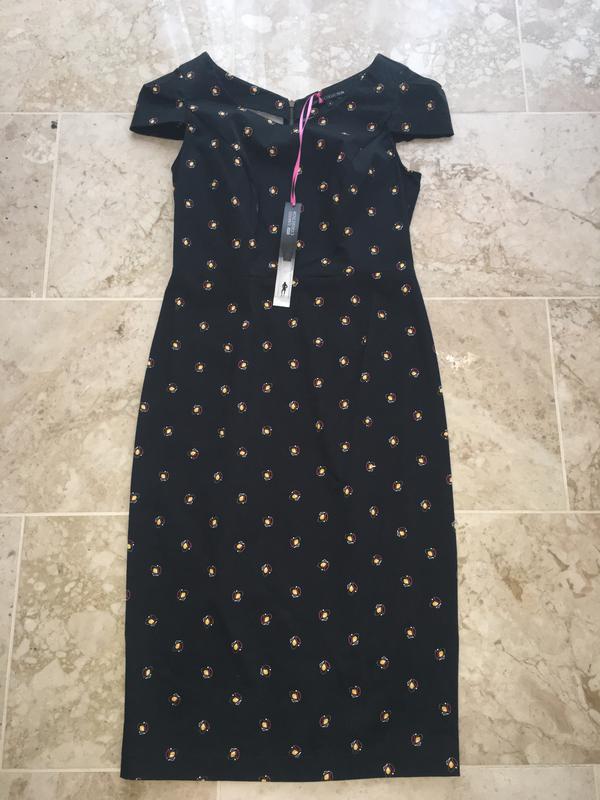Плаття "Marks&Spencer" limited collection, дуже елегантне, дуже гарно лягає по фігурі, тканина цупка. Заміри: плечі 36 см; довжина рукава 13 см; груди 90 см; талія 72 см; бедра 92 см; ширина по низу 84 см; довжина 103 см. Тканина ще натягується трошки. Ціна вказана зі знижкою - 50%.